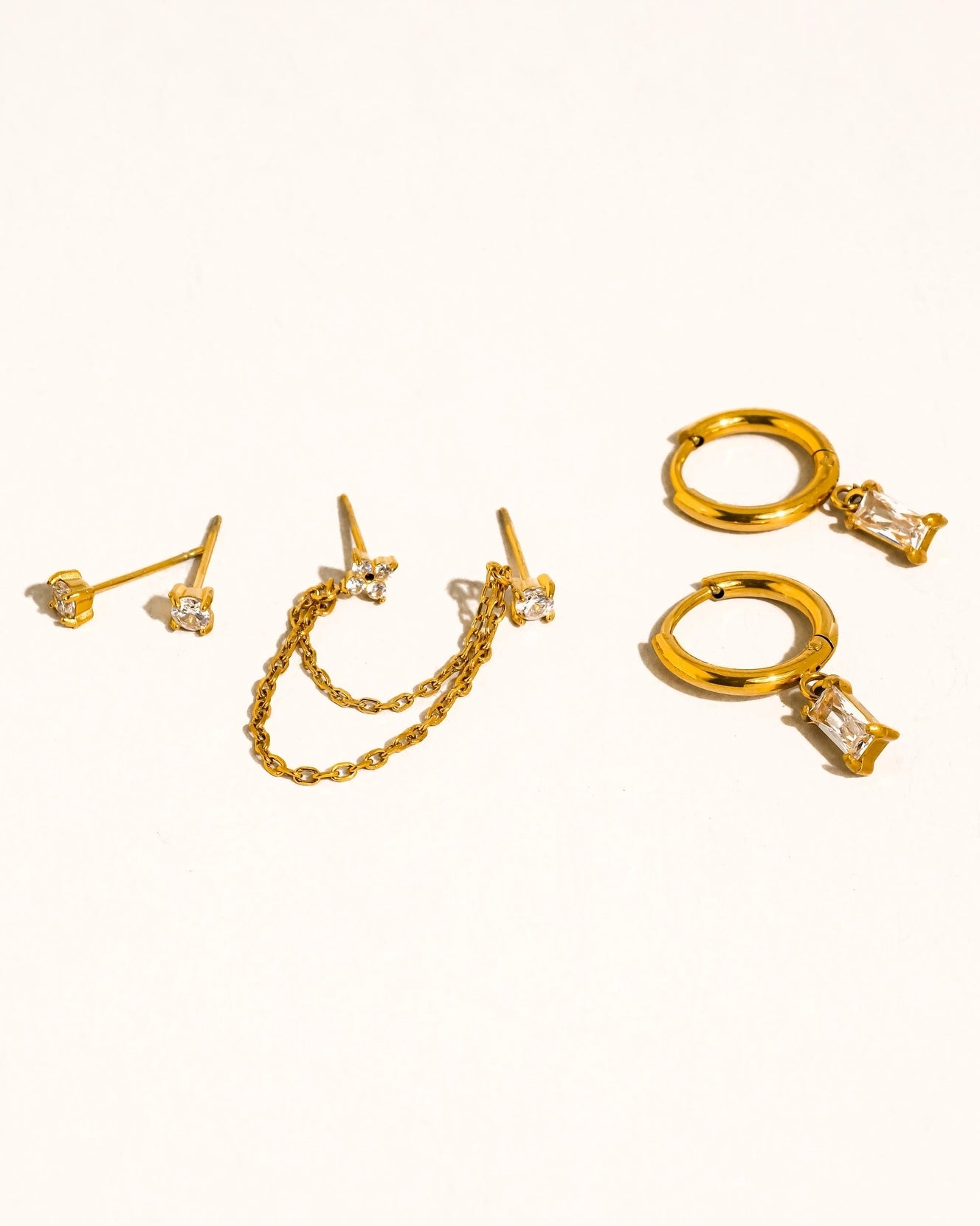 18K Gold Non-Tarnish CZ Chain Earring Set