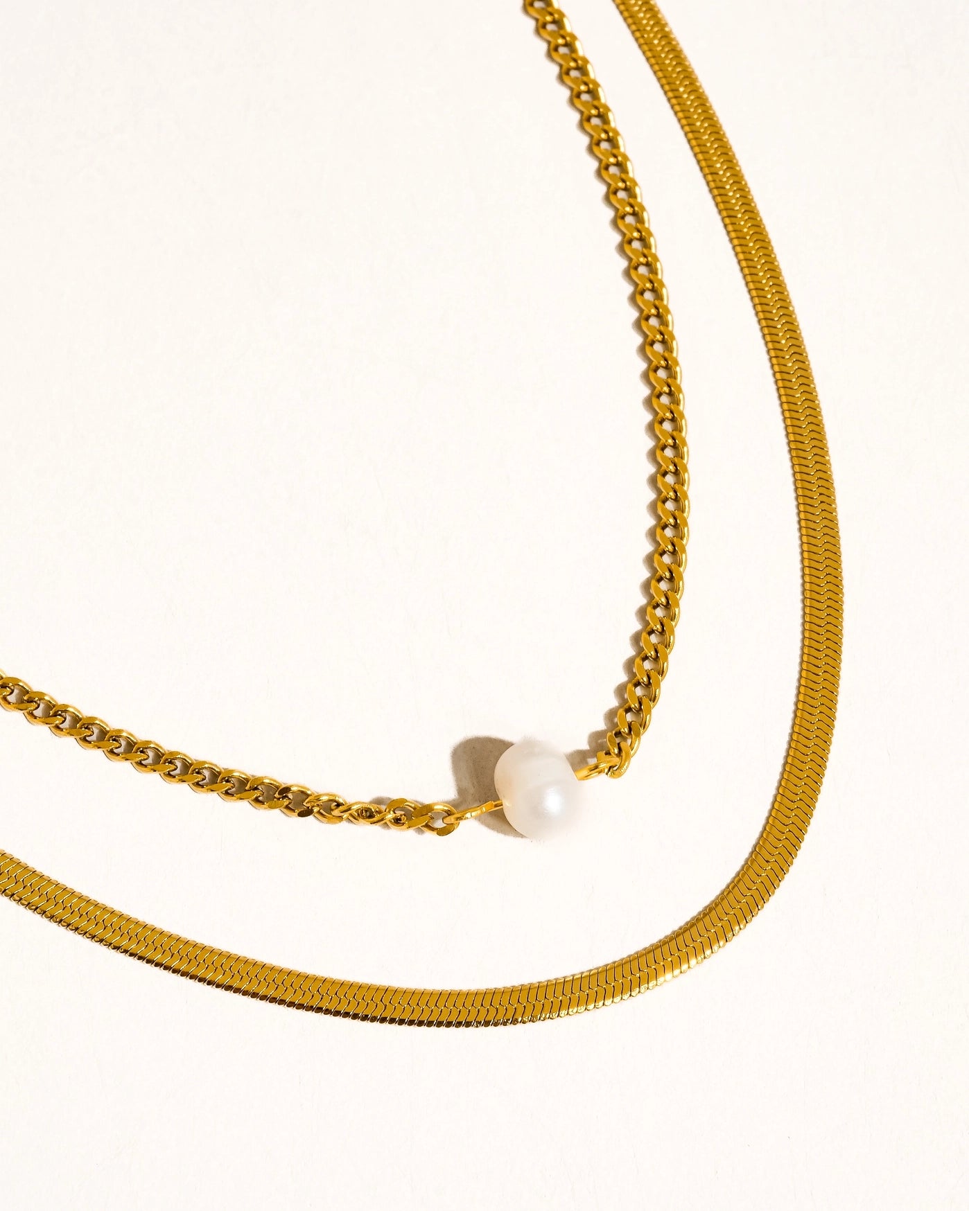 18K Gold Non-Tarnish layered Pearl Chain Necklace