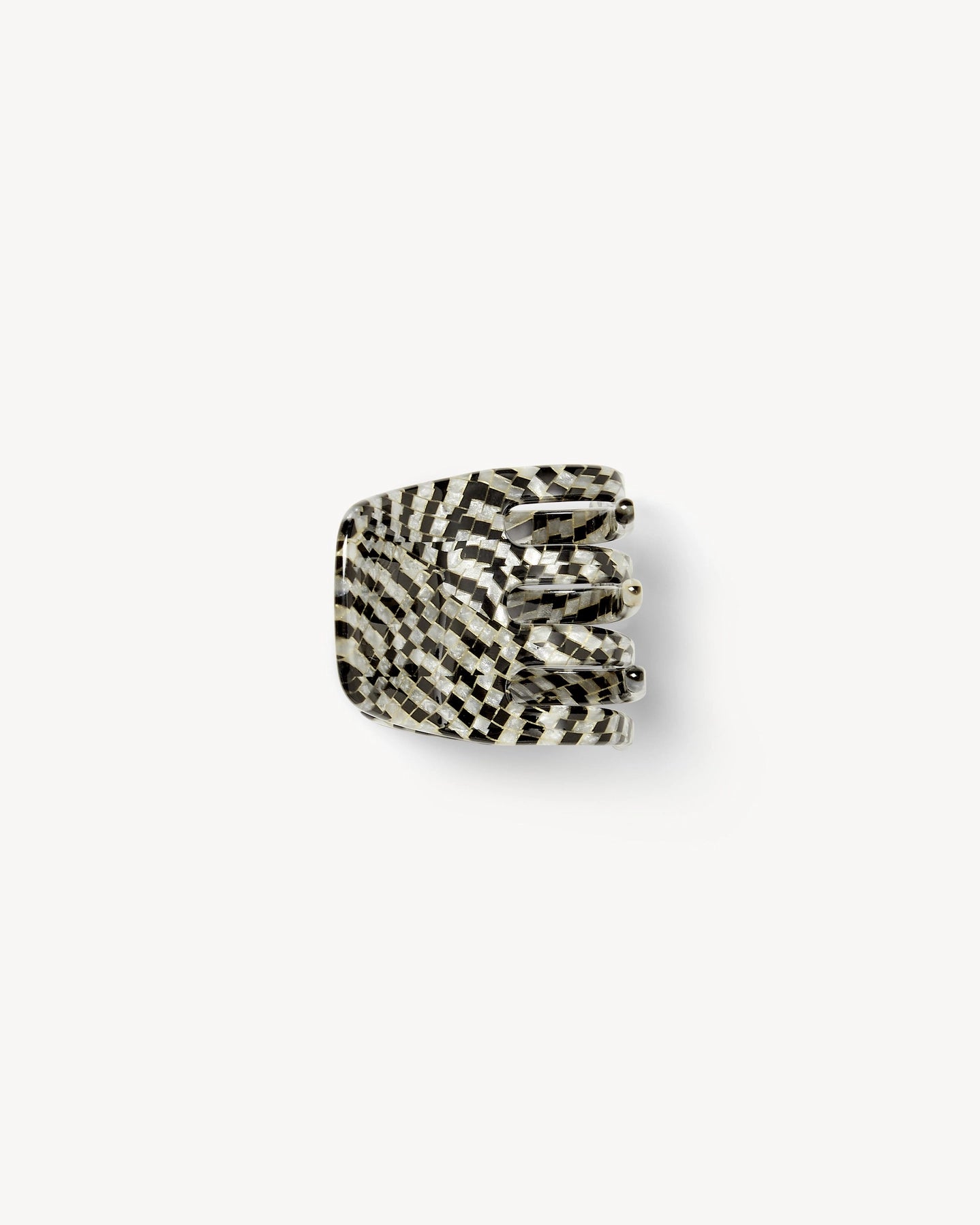 Mini claw clip measures 1.5” x 1.25” inches - Handcrafted from Italian acetate - Suitable for all hair types and textures