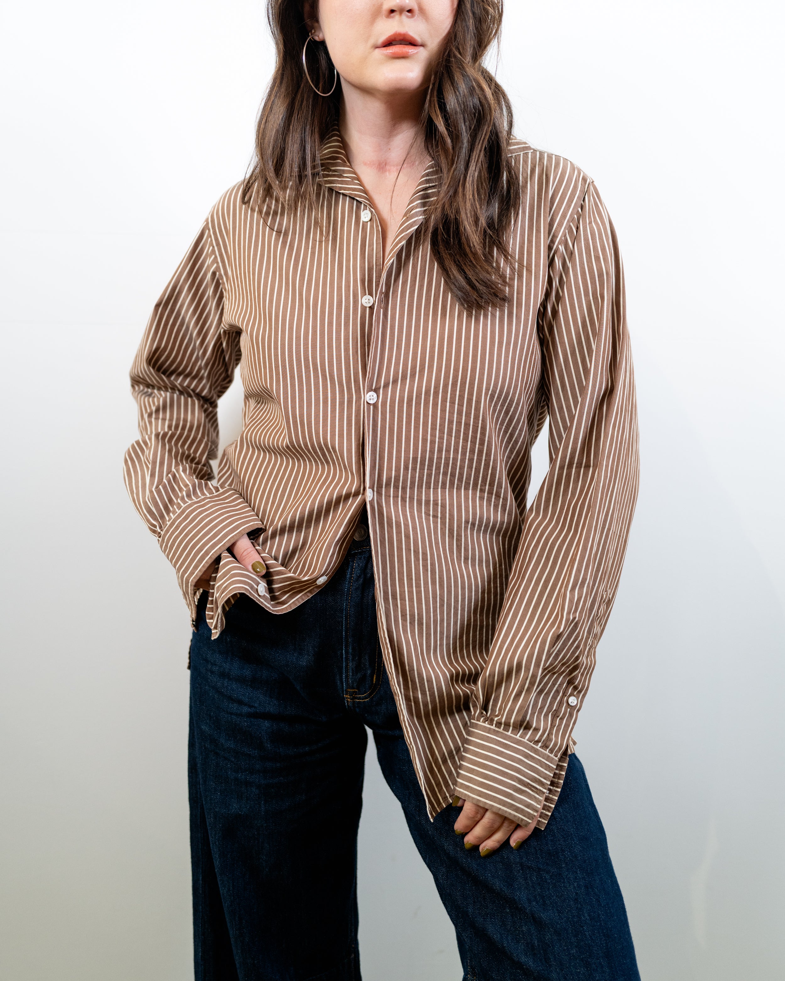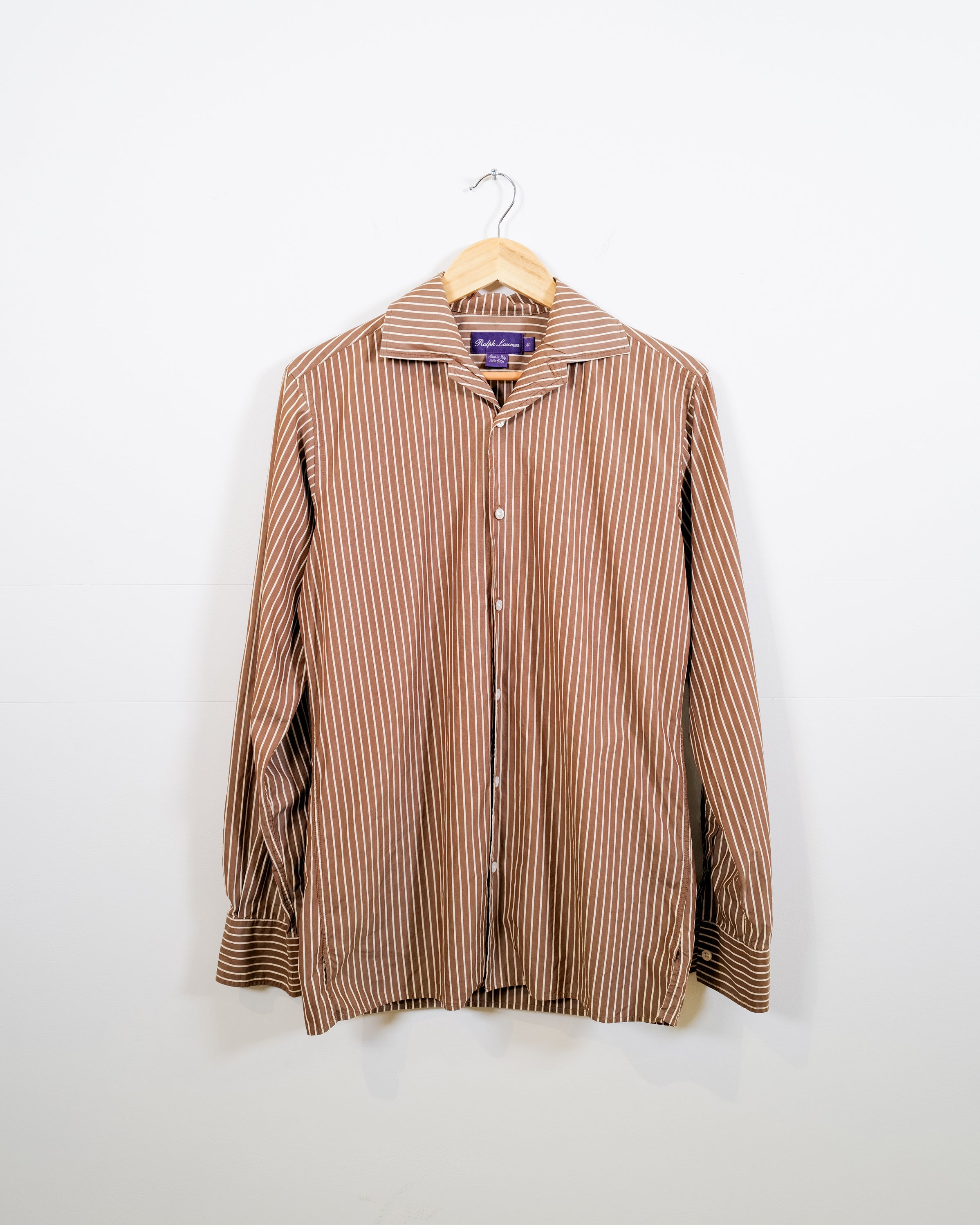 A brown stripe Ralph Lauren mens shirt from their purple label line. Retails at $595.