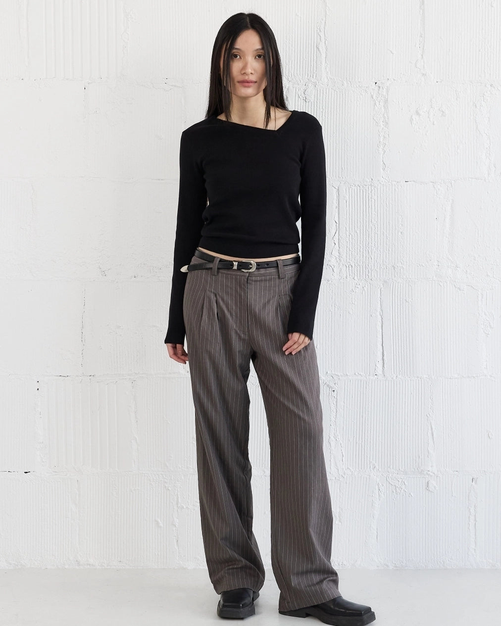 Make a statement in The Brynn Top. The unique asymmetrical neckline sets this piece apart, lending an avant-garde touch to the fitted bodice. Crafted from knitted sweater fabric, it seamlessly combines comfort with a bold, fashion-forward style.