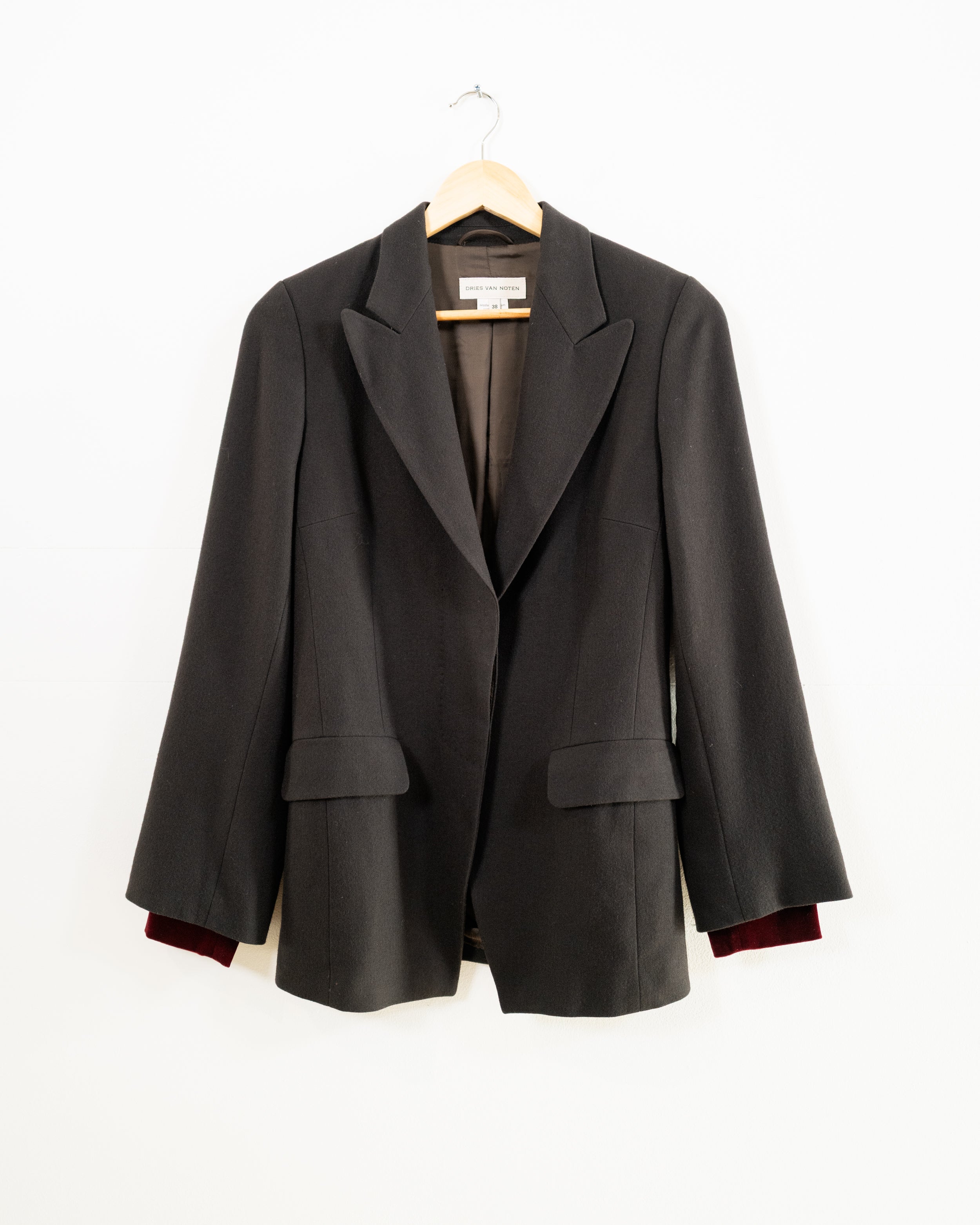 A Dres Van Noten blazer, in nearly perfect condition. Has attached velvet sleeves. Retails new around $1200.