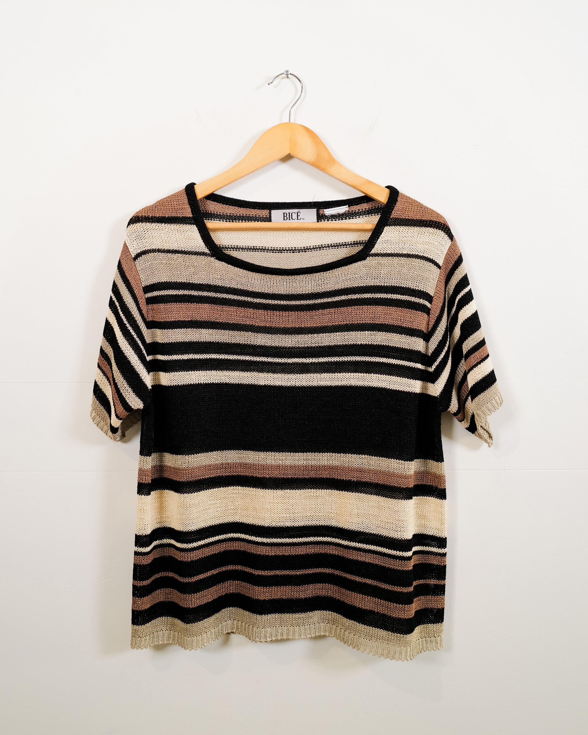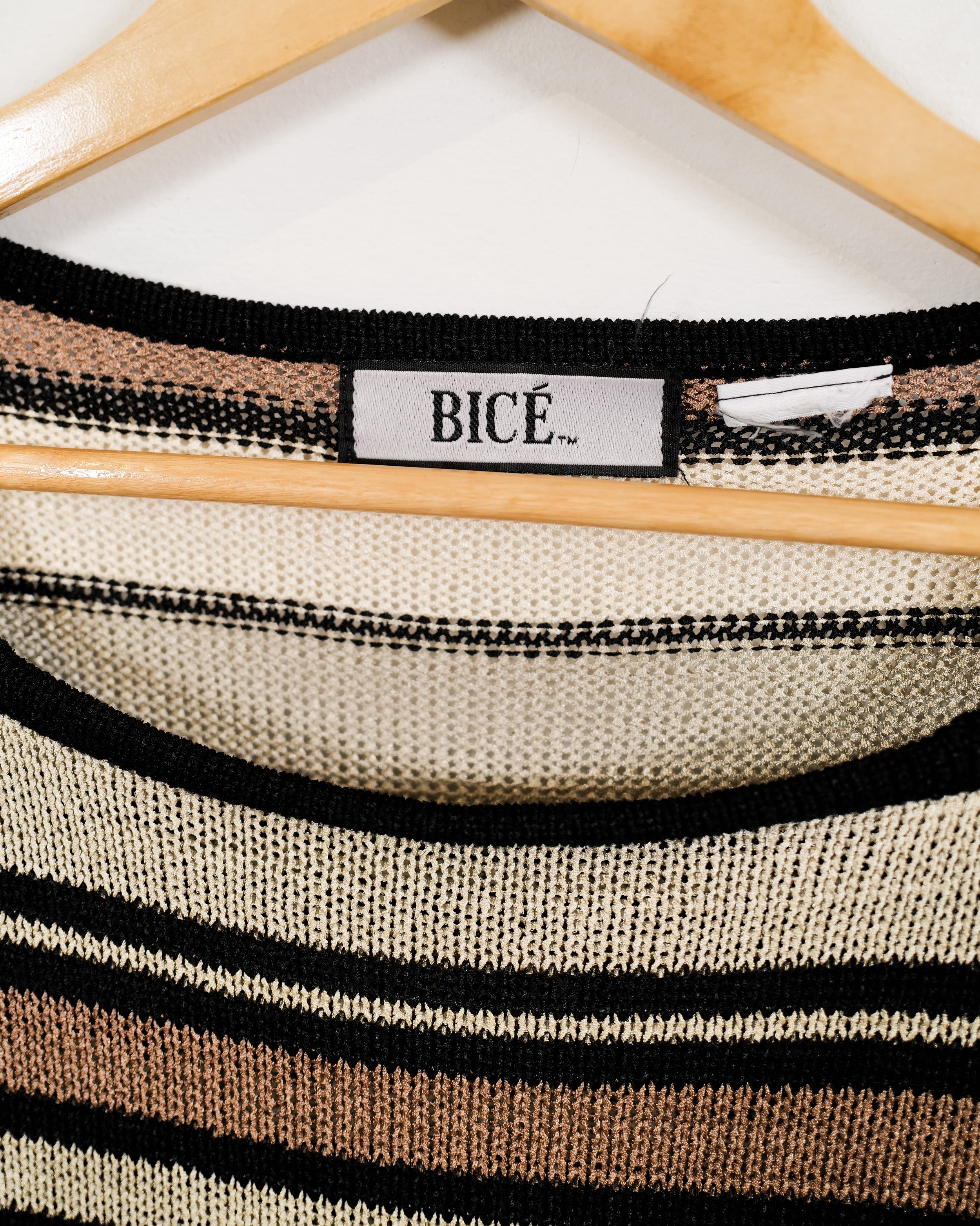 A vintage knit stripe short sleeve. In great condition. Slightly square neckline. Fabric has stretch to it.
