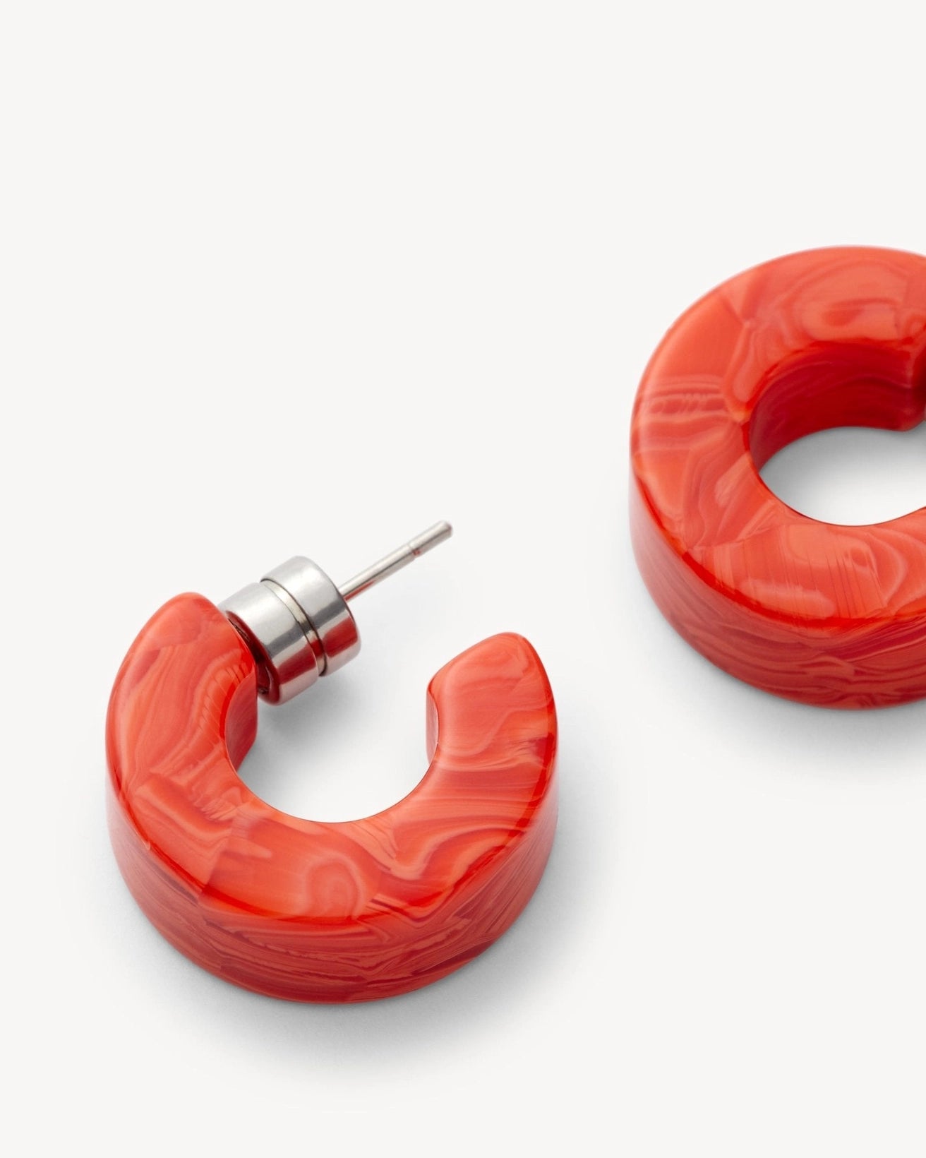 Compact, chunky hoops handmade from our Italian bio-acetate with engraved barrel backings.
