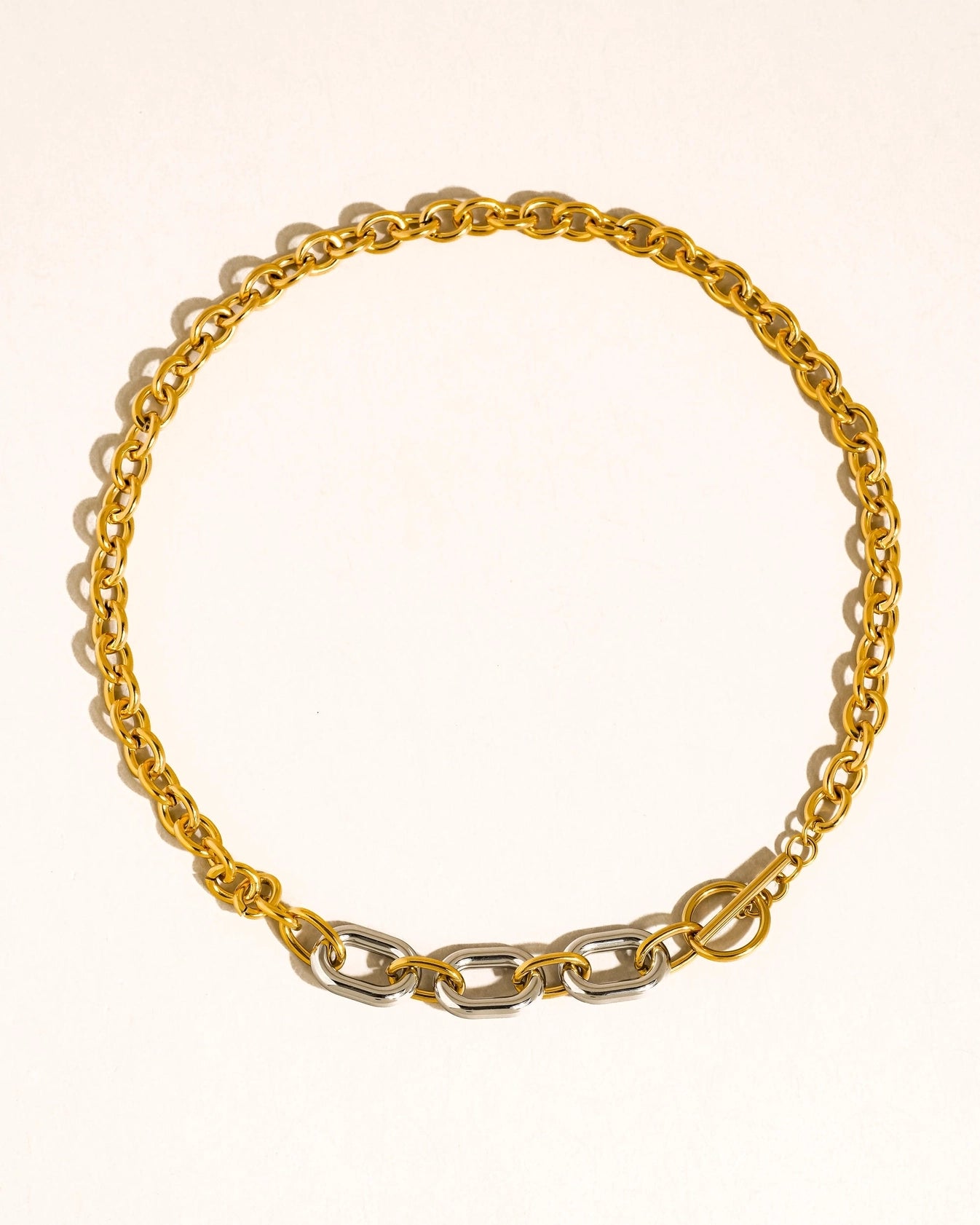 18K Gold Non-Tarnish Two Tone Chain Toggle Necklace