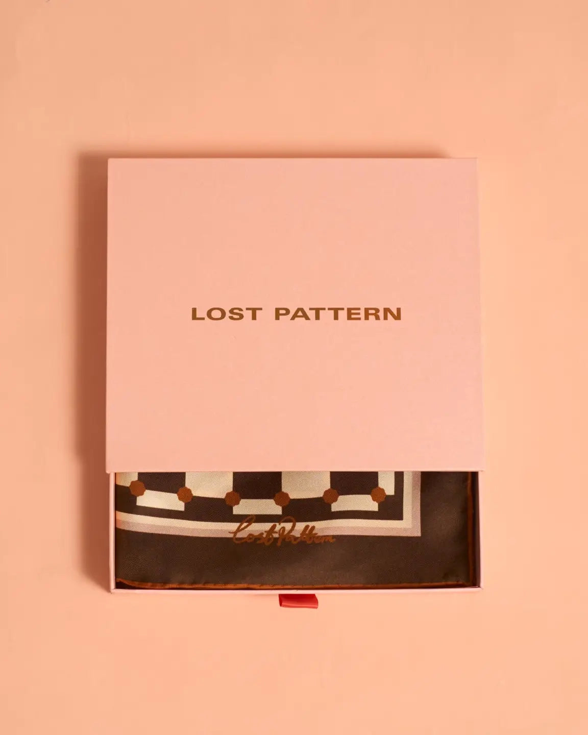 • "Checkerboard" Silk Bandana Scarf - Coffee