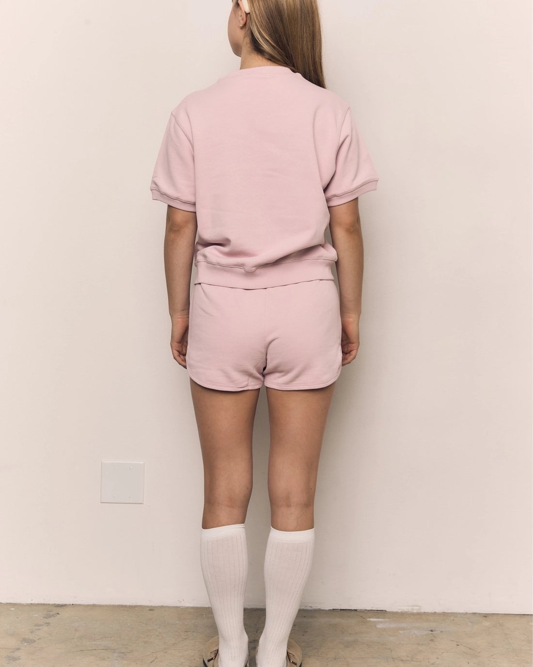 Crafted from a substantial 435G 100% organic cotton terry, these shorts offer a durable, high-quality feel with a soft fleece interior for ultimate comfort. The design features a classic athletic-inspired dolphin hem that provides a flattering, curved silhouette. Whether your customers are in "ultimate lounge mode" at home or pairing them with socks and sneakers for a cozy on-the-go look, these shorts deliver an effortless, on-trend vibe.