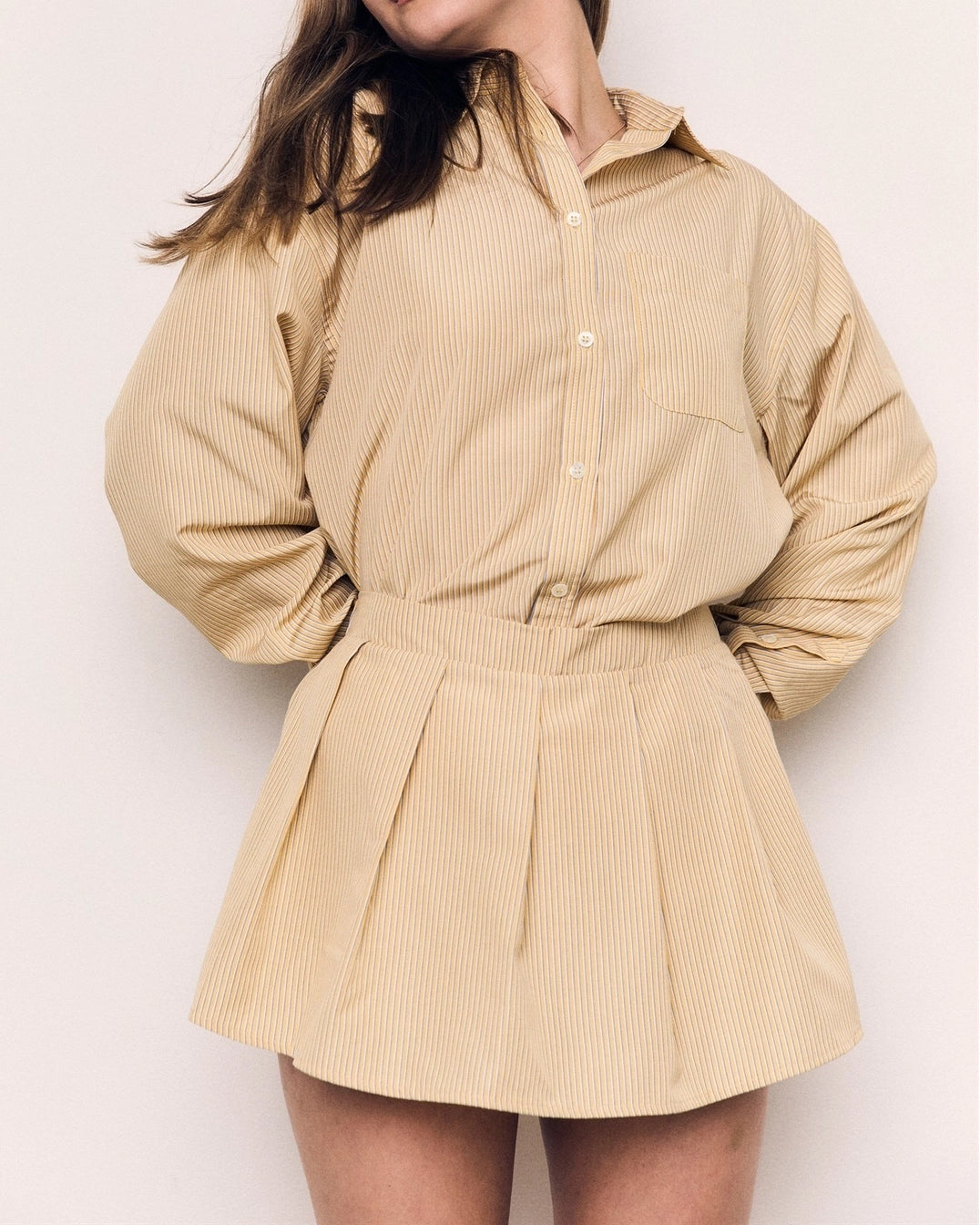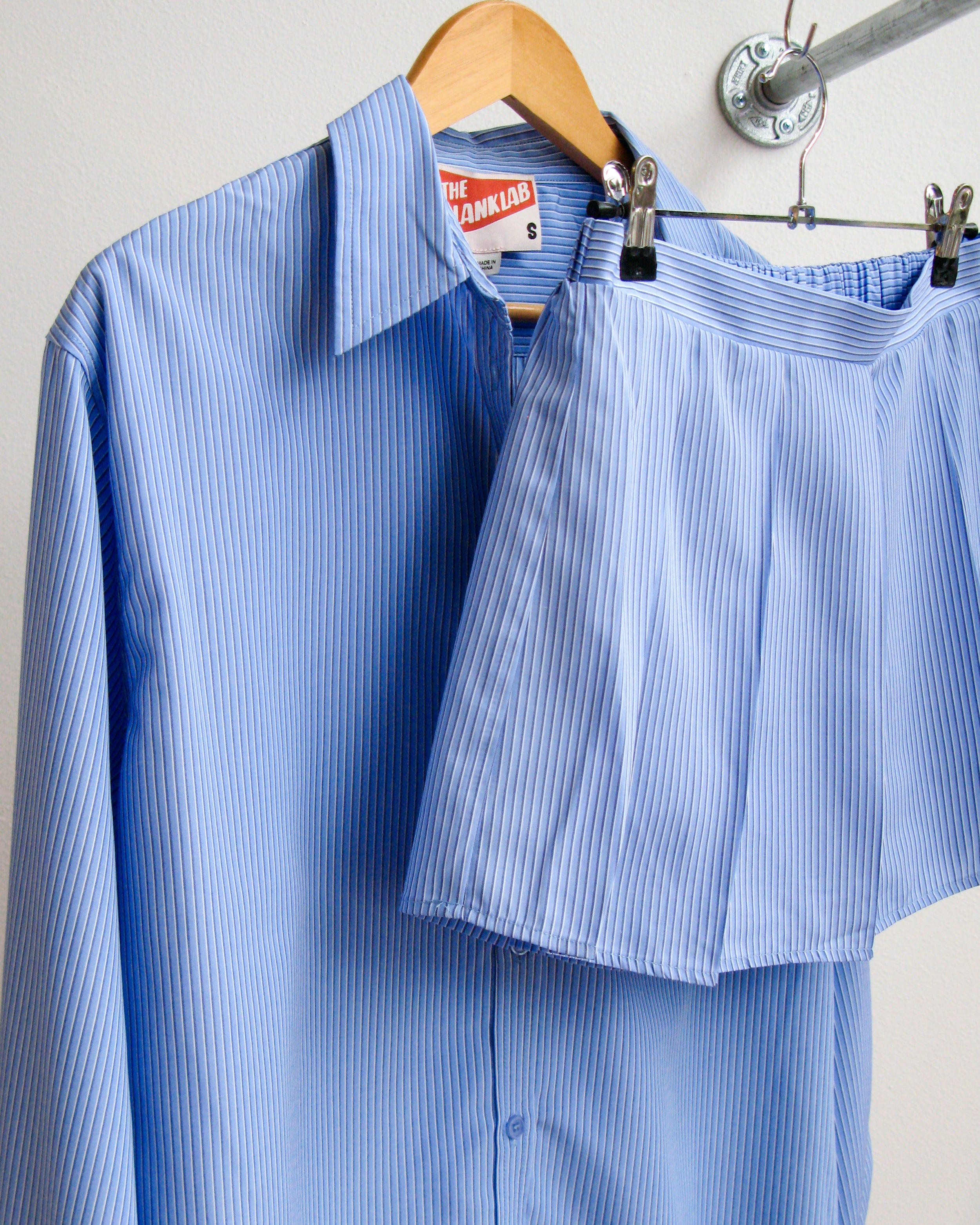 Fully lined and has an elastic waist band. Designed specifically to be paired with the striped long sleeve button shirt.