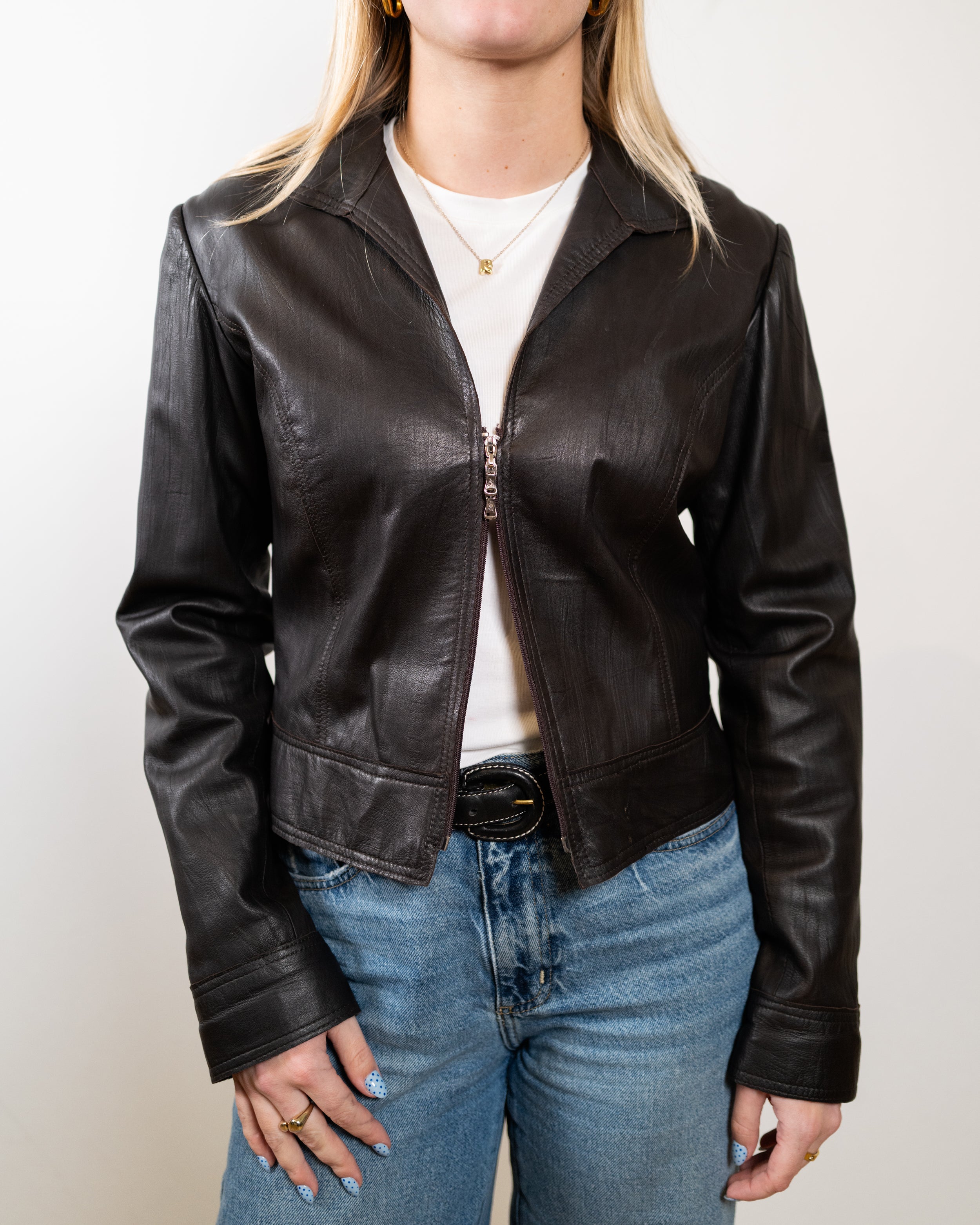 Vintage Brown Leather Jacket - 2-Way Zip