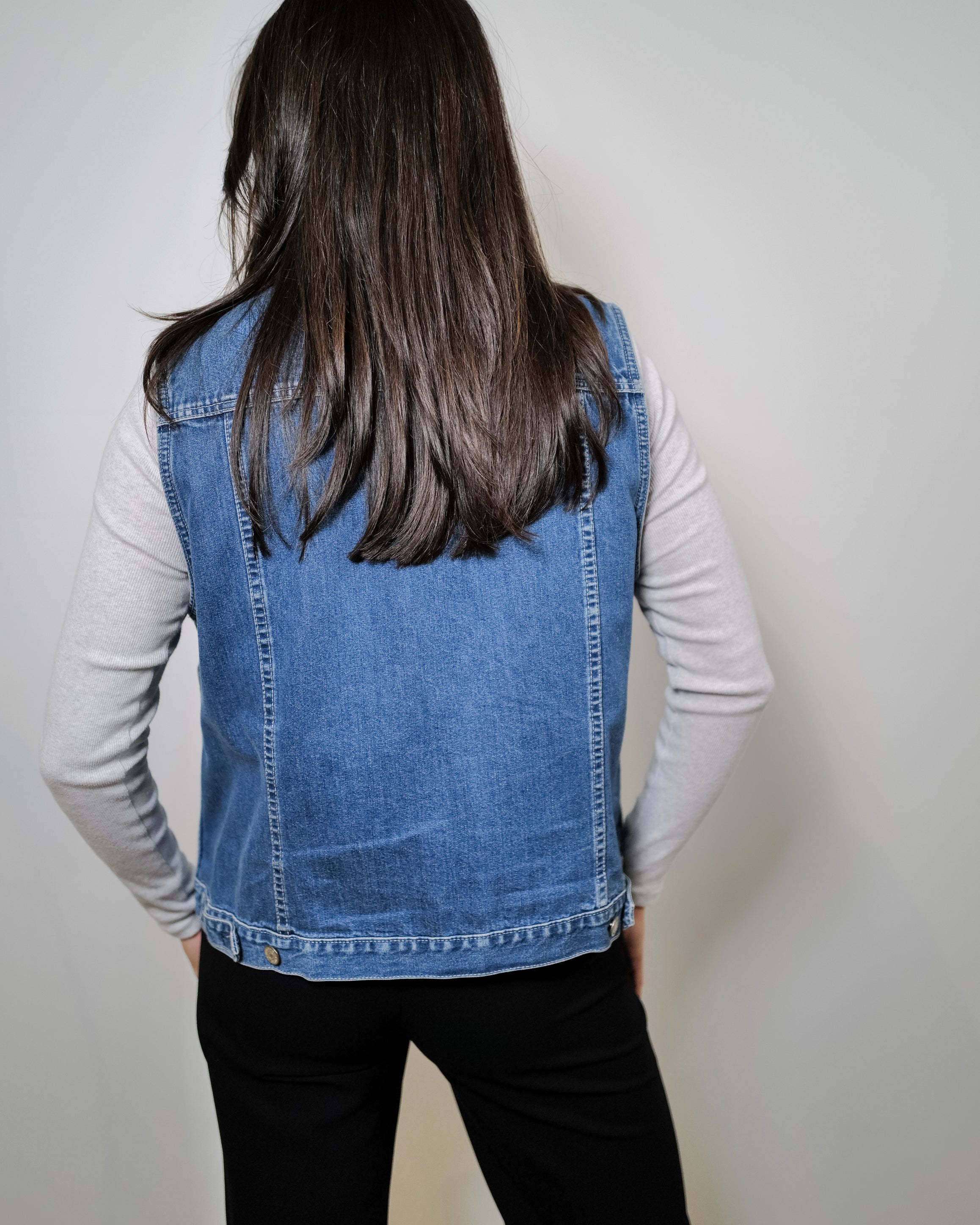 A vintage Eddie Bauer denim vest. In great condition.