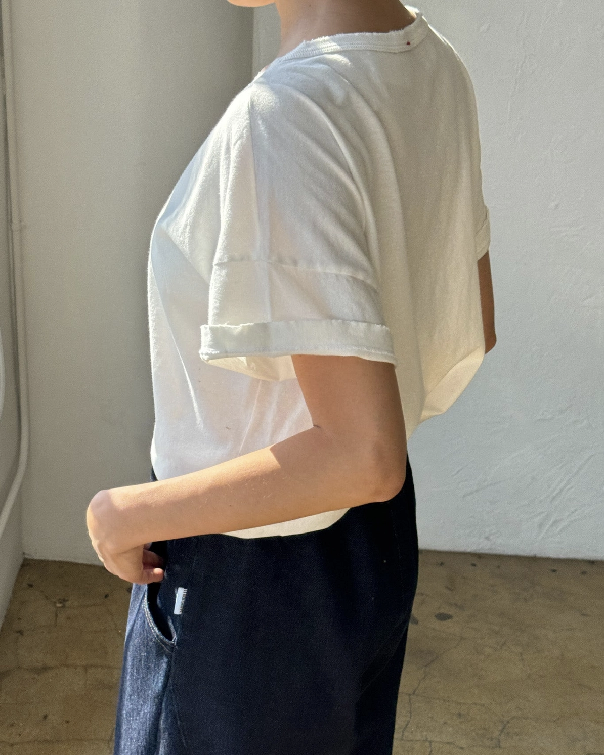 The perfect cropped but not too short tee to pair with all your high waisted bottoms is here to stay. Fille Tee is the exact length that you have been searching for in a shorter tee to wear untucked. With a light vintage distressed detail she will give you that oh so effortless look. She also washes well like other ladies!