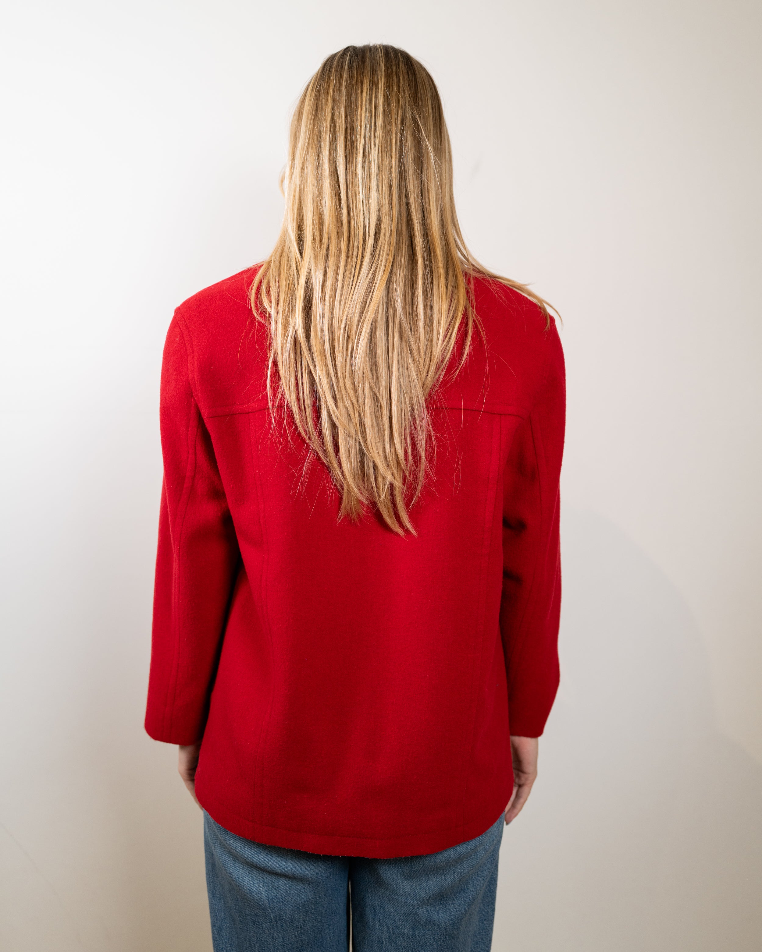 A vintage red wool blend jacket. Has signs of little previous wear- still in great condition. Fully lined. Zip closure and zip closure pockets.