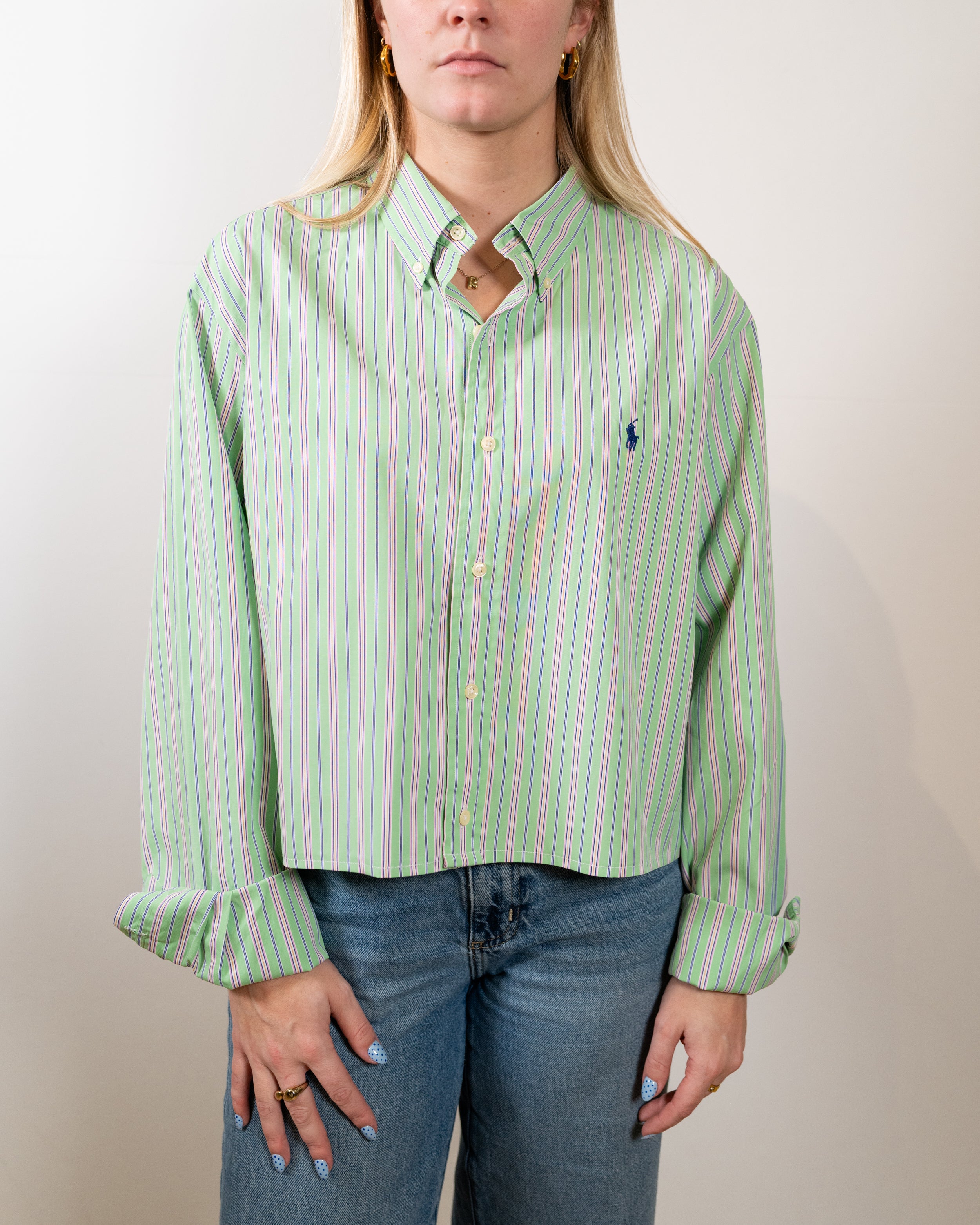 A vintage reworked Ralph Lauren cropped shirt. Meant to fit cropped and a boxy fit.